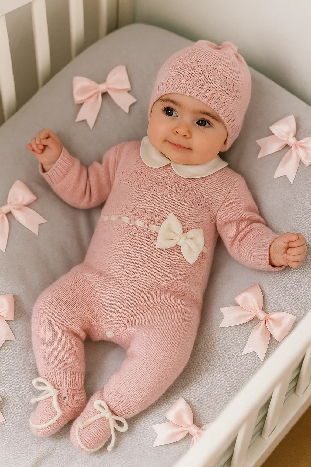 Questa tutina per neonata, realizzata al 100% in lana di alta qualità, garantisce calore e comfort delicato sulla pelle sensibile del bambino. Il dettaglio del fiocchetto aggiunge un tocco di eleganza senza rinunciare alla praticità, rendendola ideale per le prime uscite o per il riposo quotidiano. Un capo esperto nella scelta dei materiali, pensato per proteggere e coccolare la tua piccola con stile e morbidezza.