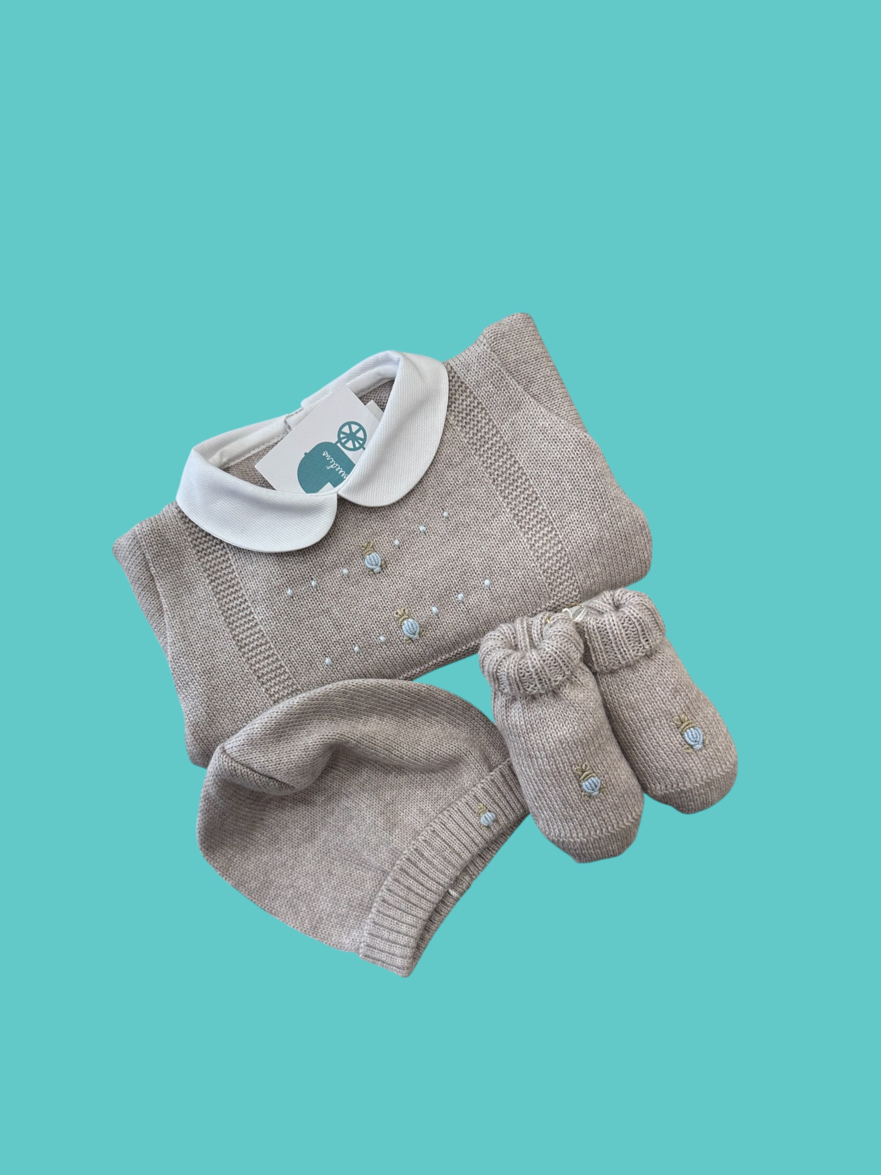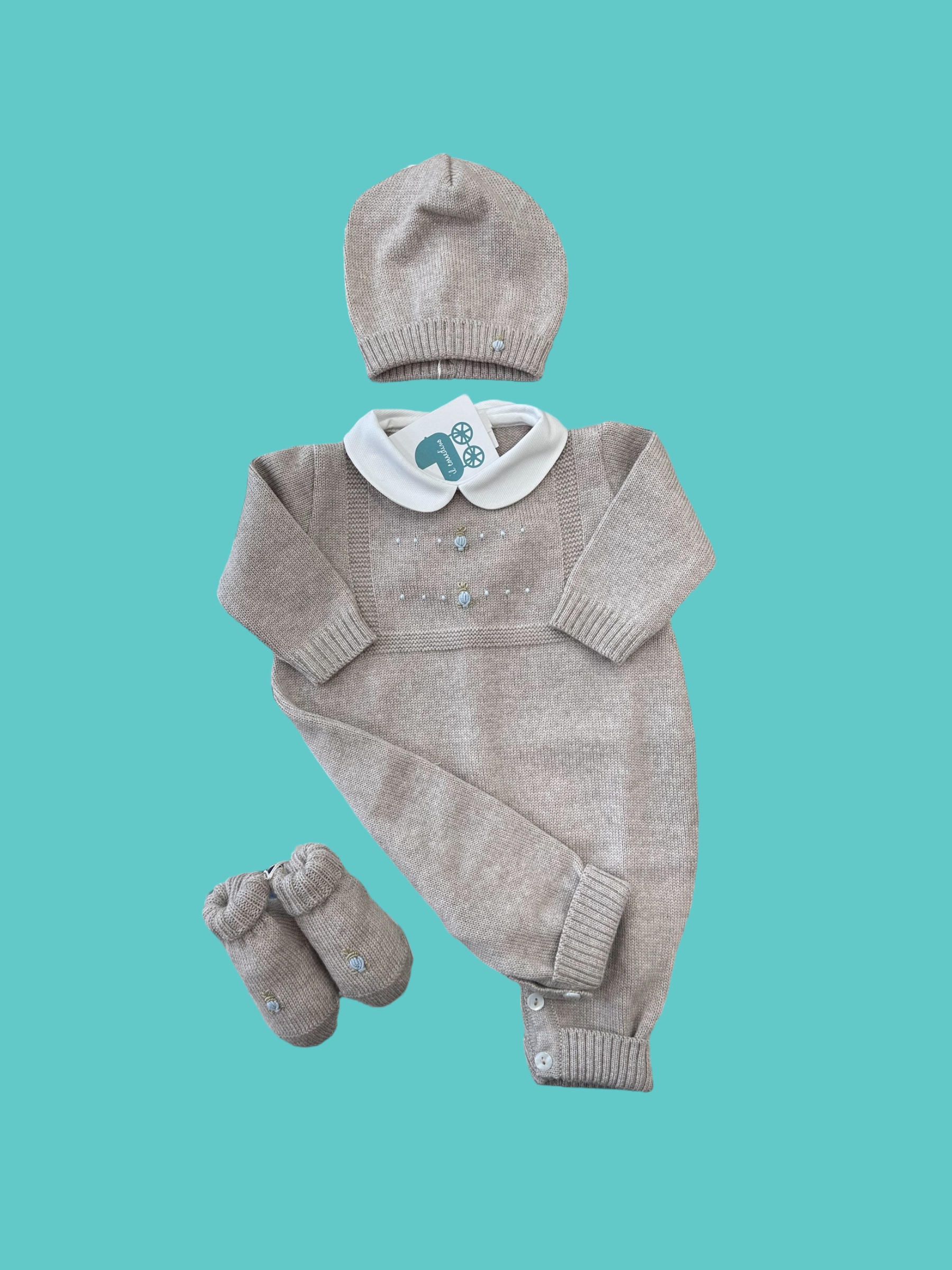 tutina, scarpe e cappello 100% lana made in Italy ricamati a mano new born 54cm