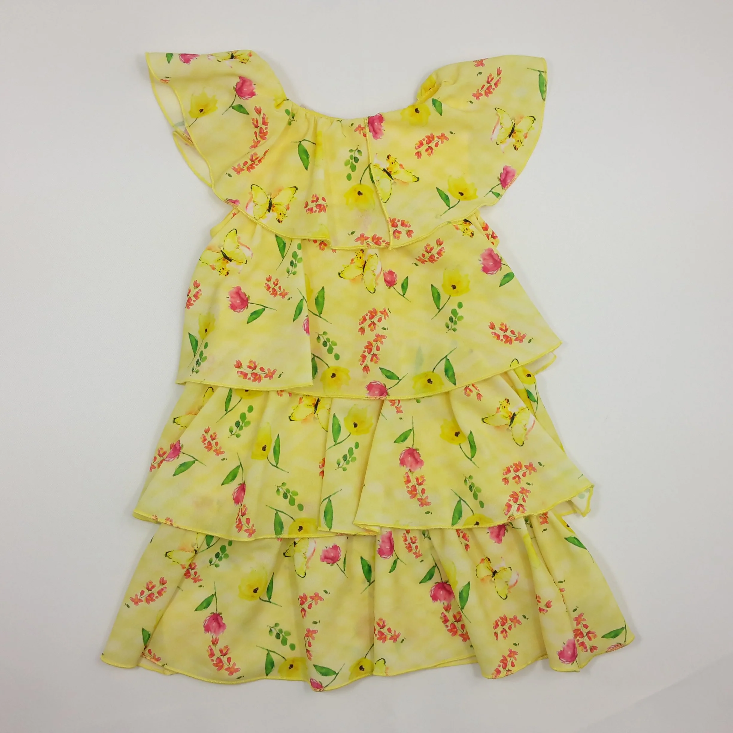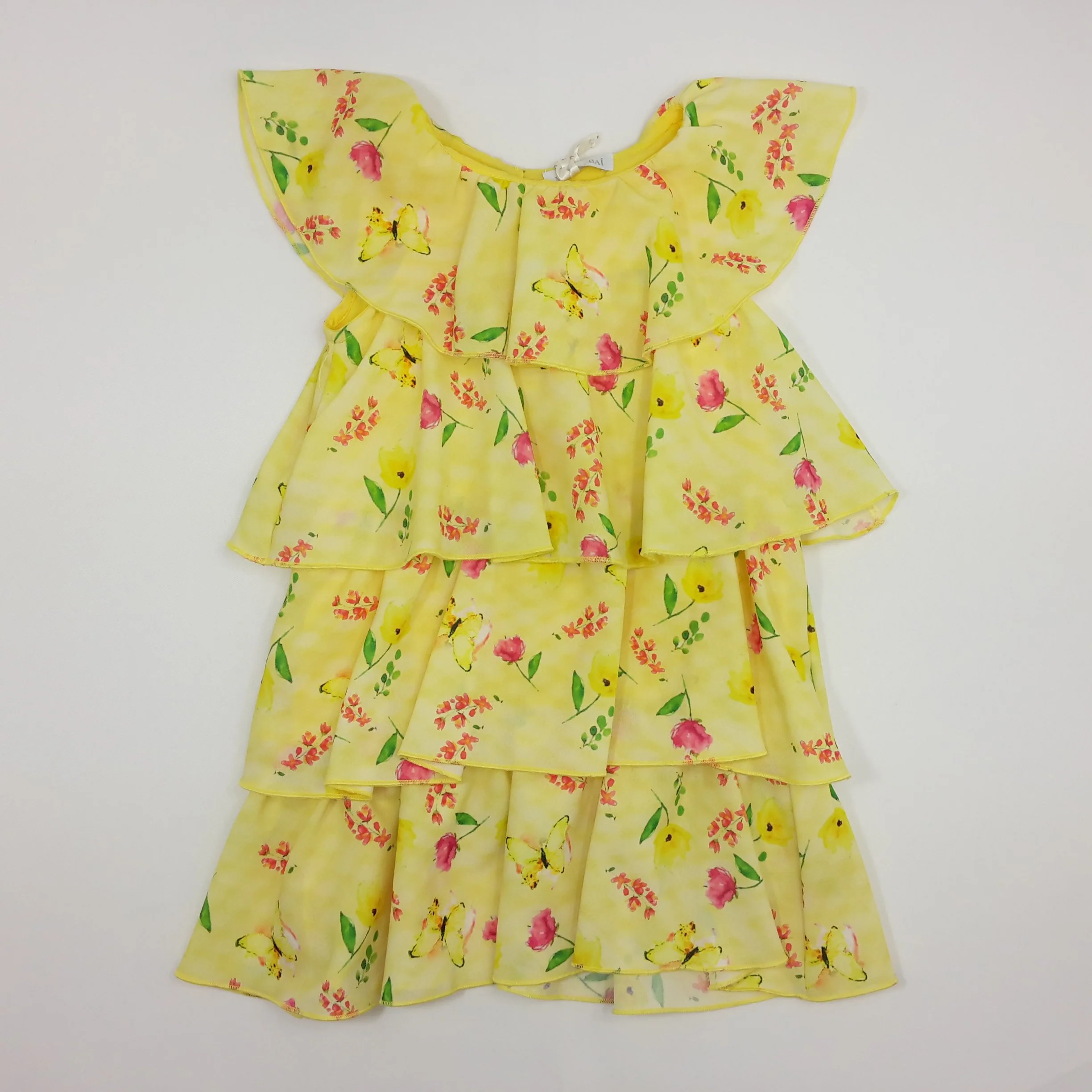 Vestito bambina a balze con stampa piene di farfalle su tono