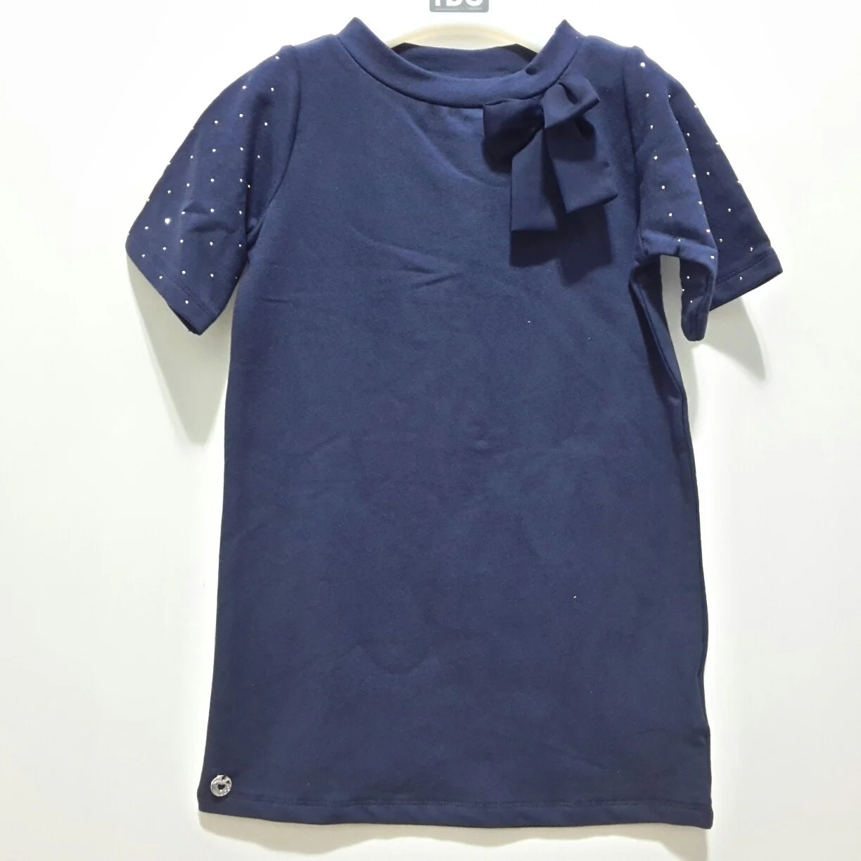 Vestito in felpa con fiocco lato collo e strass su maniche