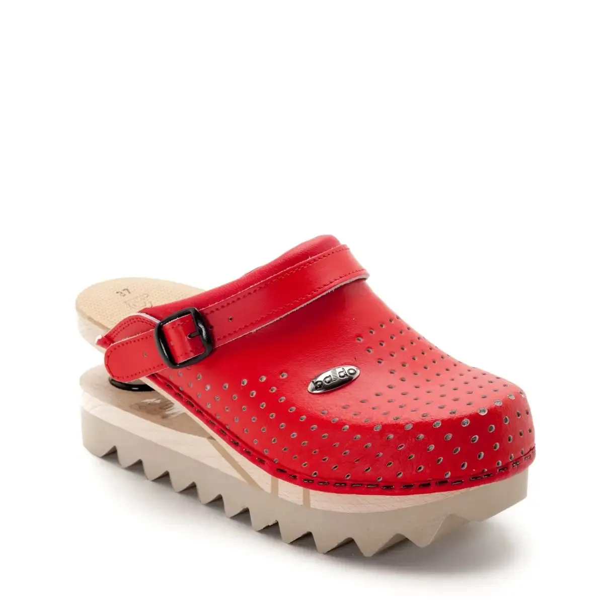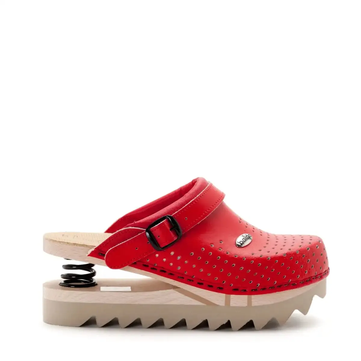 Thanks to the elasticity of its spring, it absorbs the impact of the foot and transforms every small step into a healthy exercise to reactivate circulation. The spring has the not inconsiderable task of giving lightness to the hoof, of not weighing down the foot by reducing fatigue; avoids the imbalance of the weight of the body, absorbs the traumas of the ground that are often the cause of bruises or sprains of the feet that fit normal hooves; it favors the plantar vascular circulation of the leg with the gentle push it transmits to the foot, avoiding edema, a sense of fatigue, pain in the calves. To correctly develop the undoubted sanitary qualities of the shock absorbing system, we have tried to use only the best materials – such as the non-slip sole – which make our BALDO clog even more resistant and safe.