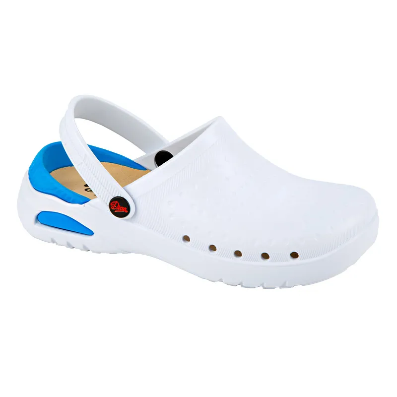 Con cinturino posteriore pieghevole tra tallone e tomaia, forato sui lati per facilitare la traspirazione, la pulizia ed evitare la penetrazione diretta nello zoccolo di liquidi o liquidi.