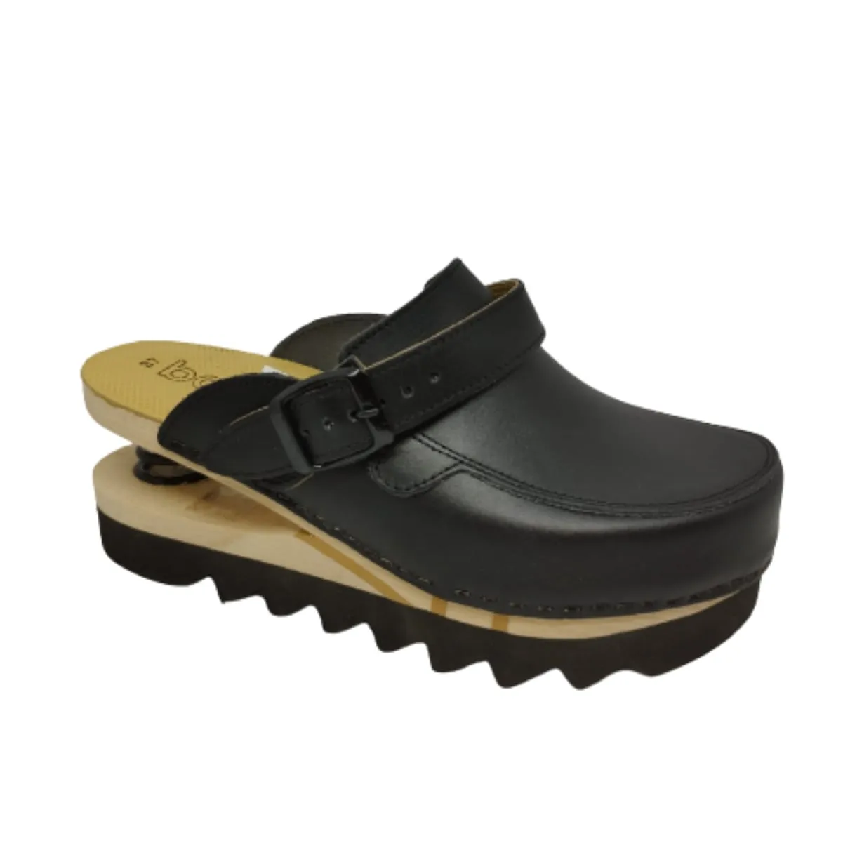 The materials chosen for the Baldo clog are natural: beech wood, genuine leather and nickel-free accessories.