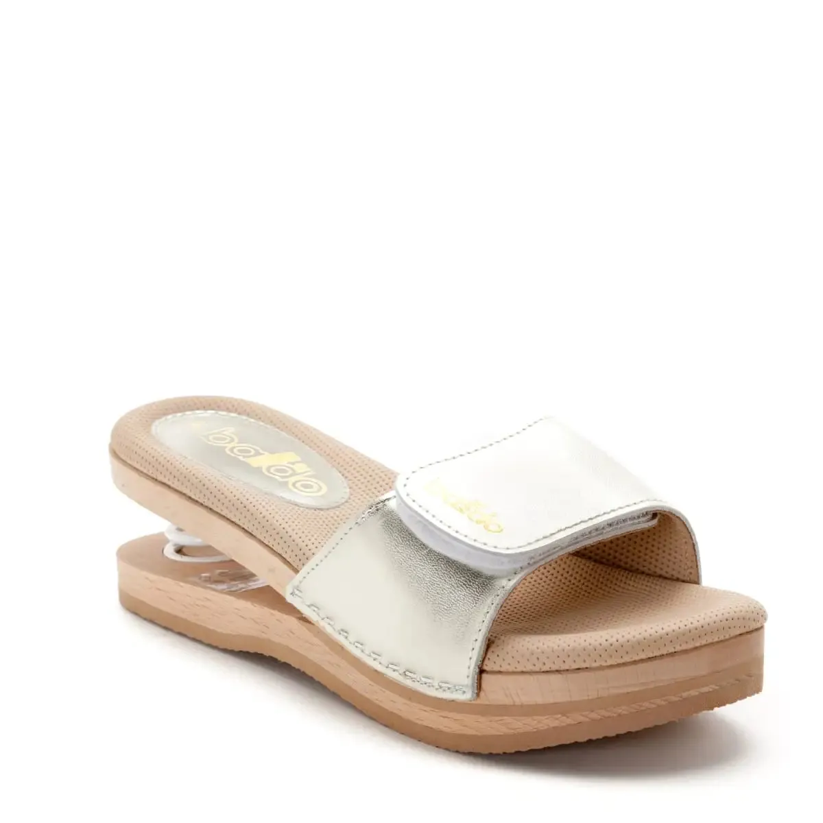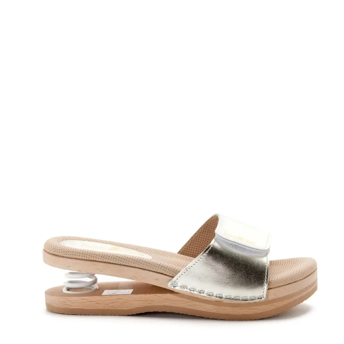 Baldo 8/81 is the exclusive wooden clog equipped with a spring, designed to cushion shocks and unload the weight of the body so as not to tire the foot.