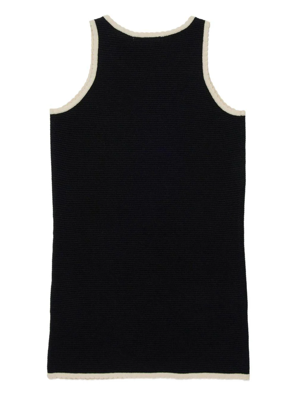 Abito con fiore Marni kids, nero, lavorato a maglia, senza maniche, bordi a smerlo a contrasto, logo ricamato sul petto, motivo con fiori.