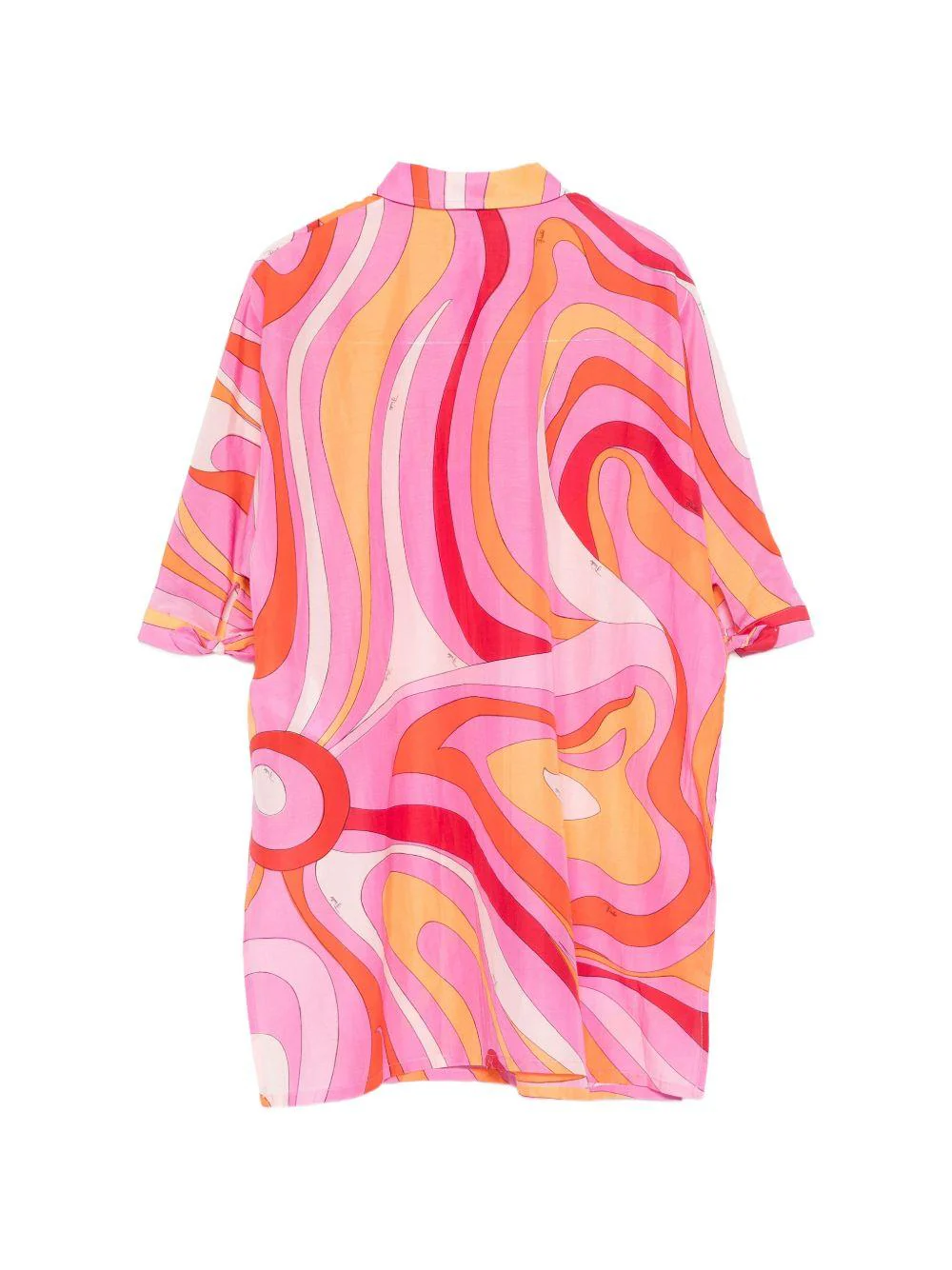 Abito con stampa Pucci Junior, rosa/arancione, leggerissima, colletto classico, maniche 3/4, stampa fantasia astratta, abbottonatura sul davanti.